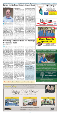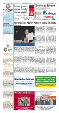 Page A 4 - A 5 Moraga Police Blotter Moraga's New Mayor Wants to Leave His Mark Parker Colvin Joins Moraga School Board Creating a Master Plan for Moraga Commons Park