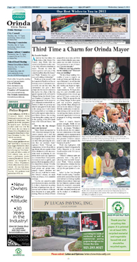 Page A 6 - A 7 Orinda Police Blotter Third Time a Charm for Orinda Mayor Orinda City Council Announces 2013 Liaison and Committee Appointments