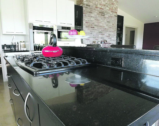 | | Published January 16th, 2013 | Counter Intelligence: Kitchen Surface Choices Abound | | By Cathy Dausman |  | | Moraga resident Suzanne Bare chose black "Galaxy" granite to emphasize her black and white kitchen remodel.