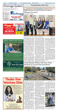 Page A10 - A11 DAR Honors Good Citizens Contest Winners for 2013 Youth Homes Plants 100-Tree Fruit Orchard at Licensed Group Home Food Drive for Pets a Success Sharing Valentine's Day Love Jazz Festival Promises to be a Real Wing Ding