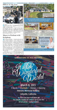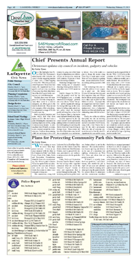 Page A 2 - A 3 Lafayette Police Blotter Chief Presents Annual Report Christensen updates city council on incidents, gadgetry and vehicles Plans for Protecting Community Park this Summer Officer of the Year Mayor to Perform with Symphony
