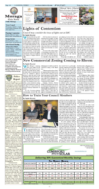 Page A 4 - A 5 Moraga Police Blotter Lights of Contention Council may consider the issue of lights-out at SMC New Commercial Zoning Coming to Rheem How to Train Your Council Members Mr. Chew Will Not Go To Washington Community Thanks Town Staff