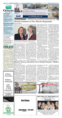 Page A 6 - A 7 Orinda Police Blotter Orinda Continues to Flex Muscles Regionally Short er Season Ahead for 2013 Orinda Farmers' Market Orinda to Continue Downtown Parking Discussions