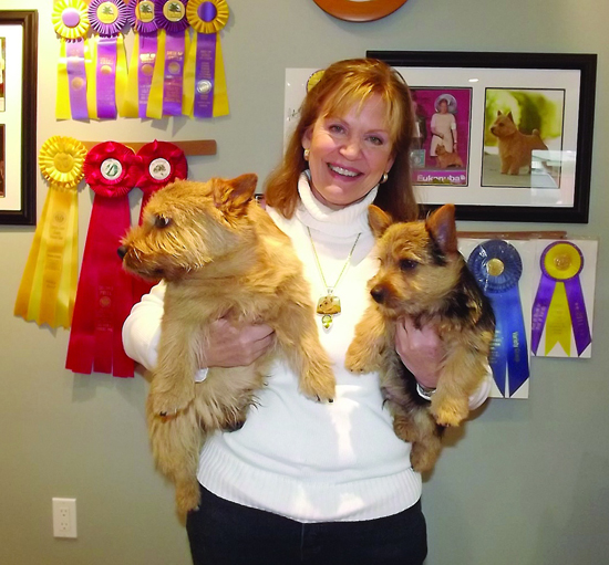"In my social circle he's famous," exclaims owner Candice Harper. Harper, who owns Waiterock Kennels, used to show dogs as a child and came back to the show ring in 1989 with Scotties and Springer Spaniels and later with Norwich Terriers. She calls her beloved Norwich breed a "true terrier," meaning the dogs are mild-mannered animals who work cooperatively in packs.