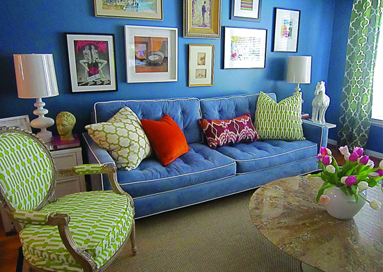 | | Published April 10th, 2013 | The Home Designer Color Blind | | By Brandon Neff |  | | Deep blue walls add a warm and dramatic background in this art-filled living room. Photos Brandon Neff Design