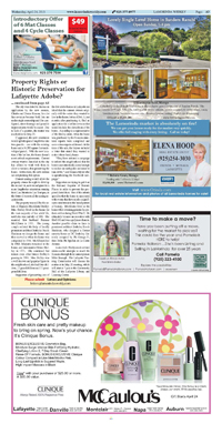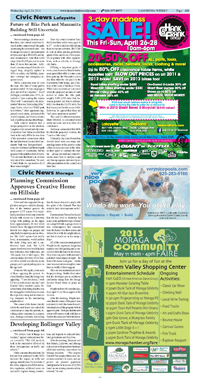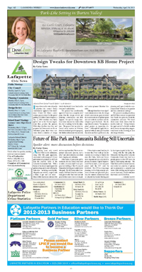 Page A 2 - A 3 Lafayette Police Blotter Design Tweaks for Downtown KB Home Project Future of Bike Park and Manzanita Building Still Uncertain Spoiler alert: more discussion before decisions