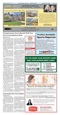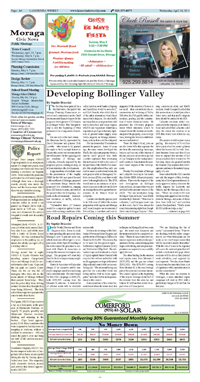 Page A 4 - A 5 Moraga Police Blotter Developing Bollinger Valley Road Repairs Coming this Summer Planning Commission Approves Creative Home on Hillside Olsen Honored