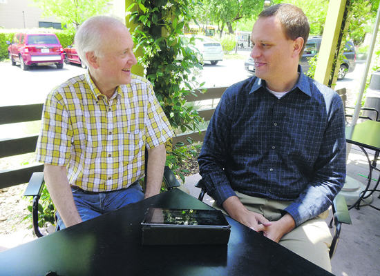 | | | From left: Score counselor Larry Tessler and Randall Martin meet for mentoring sessions. Photo Sophie Braccini