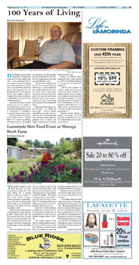 Page A10 - B1 Swim, Baby, Swim! Letters to the Editor 100 Years of Living Lamorinda Slow Food Event at Moraga Herb Farm