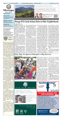 Page A 4 - A 5 Moraga Police Blotter Moraga Will Clarify Setback Rules in Older Neighborhoods Kids' Day for Special Olympics a Big Success Moraga Police Apprehend Home Burglar Certificates of Participation to Fund Road Repairs