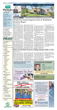 Page A 6 - A 7 Orinda Police Blotter Orinda City Council Approves Lists of Residential Roads for Repair Opera in the Park Concert to Bring Orinda's Hills to Life Take Your Best Shot, Orinda City photo contest celebrates July as "Parks Make Life Better Month"