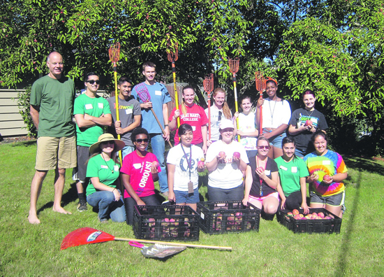 | Published September 11th, 2013 | 200 SMC Students Start the Year by Volunteering | By Chris Lavin |  | These fruit pickers are just a few of the 200 Saint Mary's College students who gave back to their community Aug. 31 for the WOW Saturday of Service. Among other projects, students picked fruit at participating Lamorinda homes for donation to a food bank. Posing with apples from their first house (from left, back row): Moraga homeowner Chris Merlin, Jose Rodriguez, Makana Ward, Guy Whittall-Scherfee, Hailey Zummo, Megan Zummo (twin freshmen), Ollie Maggi, Kiara Grey, and Jordan Lampi. Front row: Sarah Dempsey, Rachel Hartley, Raegina Mafnas, Alondra Gallardo, Lyric Kadir, Viviana Garcia, and Alakoko Kailahi. Photos Chris Lavin