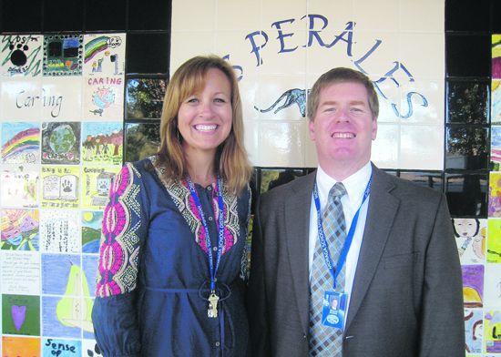 | Published September 11th, 2013 | Los Perales Elementary Gets New Principal | By Chris Lavin |  | Incoming Los Perales Elementary School Principal Amy Banks was welcomed to the school by Superintendent Bruce K. Burns. Photo Chris Lavin