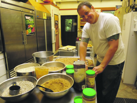 | By Sophie Braccini |  | John Heylin prepares cricket meal-based snacks in Canyon. Photo Sophie Braccini