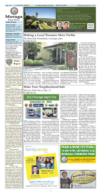 Page A 4 - A 5 Moraga Police Blotter Making a Local Treasure More Visible The Hacienda Foundation's strategic plan Make Your Neighborhood Safe Moraga Night Out is Sept. 22 Livable Moraga Road Project