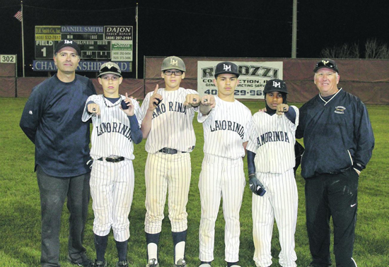 | Published September 25th, 2013 | Lamorinda Baseball is No. 1 | Submitted by Steve Allen |  | From left: Coach Rudy Lopez, Lucas Allen, Javier Lopez, Josh Alvarado, Dandre Gaines, head coach Rick Rider. Photo provided
