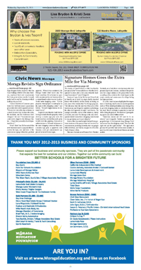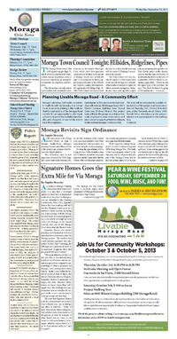 Page A 4 - A 5 Moraga Police Blotter Moraga Town Council Tonight: Hillsides, Ridgelines, Pipes Planning Livable Moraga Road - A Community Effort Moraga Revisits Sign Ordinance Signature Homes Goes the Extra Mile for Via Moraga Pear and Wine Festival Returns