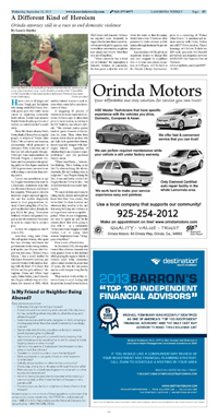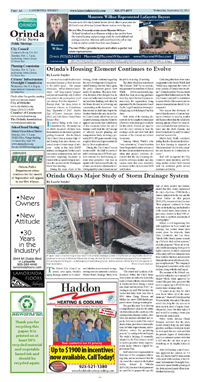 Page A 6 - A 7 Orinda's Housing Element Continues to Evolve Orinda Okays Major Study of Storm Drainage System Library Town Hall Oct. 5 "It takes just as much energy to wish as it does to plan." - Eleanor Roosevelt