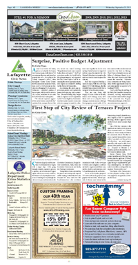 Page A 2 - A 3 Lafayette Police Blotter Surprise, Positive Budget Adjustment First Step of City Review of Terraces Project Brill to Leave Lafayette