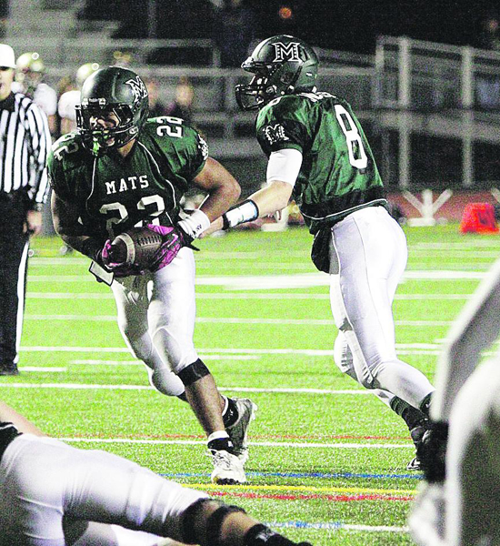 With 3:27 left in the game, the Mats faced a fourth-and-seven from the Eagle's 48, and head coach Jack Schram left his offense on the field. "I've got extreme confidence in our offense," he said after the game. "I knew they could get it done."