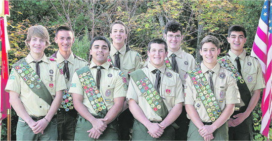 | Published December 18th, 2013 | New Troop 219 Eagle Scouts Honored | Submitted by Lisa Lindgren |  | Back row, from left: Elias Morley, Austin Wentzel, David MacDannald, and Ethan Lindgren. Front row: Anton Reifsteck, Layton Wieczynski, Vincent Gladden, and Justin Higgins.