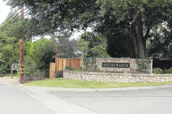 Lafayette's Sky Hy Ranch is a gated community of 28 custom-built homes sitting just below the crest of Moraga Road. "Many drivers pass by every day not knowing of its existence," said Reilly. Lafayette Historical Society's website explains that Sky Hy's original ranch was a Spanish-style home custom built in 1941 and owned by Judge O.D. Hamlin.