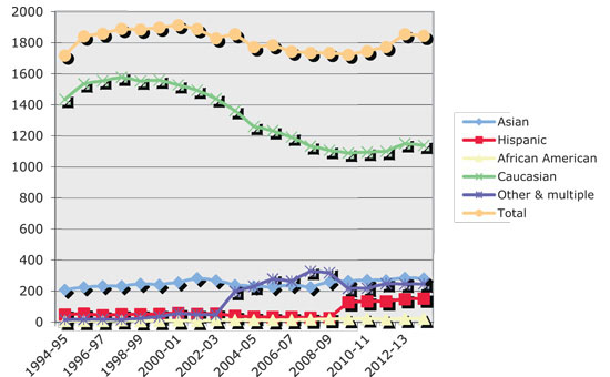 The superintendent was not aware that in 2008, when the Moraga Center Specific Plan was approved, the environmental impact study prepared by the town's consultant found that the school district had enough capacity for the number of new homes proposed. "We have hired a demographer who will look at birthrates, enrollment trends, proposed development, and will estimate a 'student generation rate.'" Burns says that the heart of the district's concern is the facilities that haven't had significant attention since the mid '90s. "We need to look at renovation, seismic retrofit, and if we need to increase capacity we will have to build new classrooms." The alternative would be to increase class size- Burns notes that in the '70s, when the district was teaching almost 1,000 more students than it is today, the average class size was more than 30 students, rather than the 20-something of today.