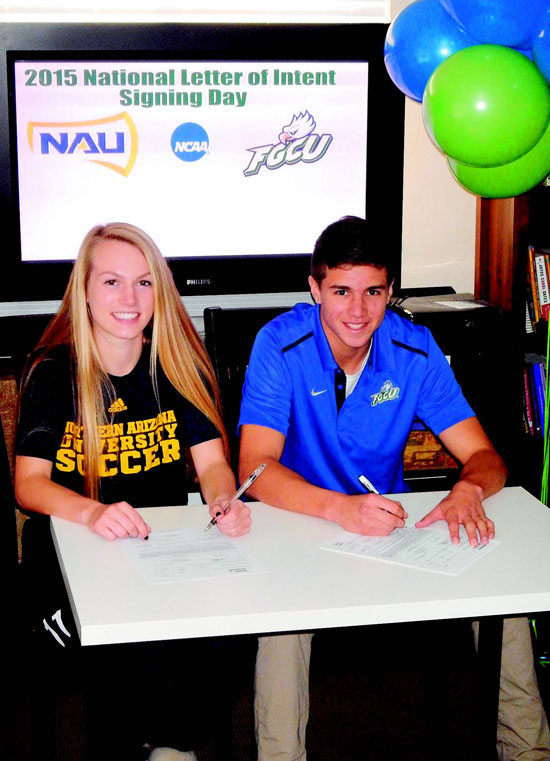Three Lamorinda athletes signed National Letters of Intent to play college soccer this week. Preston Kilwien, who played three seasons at Campolindo before joining the De Anza Force Academy in Cupertino, will attend Florida Gulf Coast University on a soccer scholarship. Samantha Vankoll is a senior at Campolindo and will attend Northern Arizona University on a soccer scholarship. Acalanes senior Wilson Hall, who also plays for De Anza Force Academy, committed to attend and play soccer at Notre Dame de Namur.