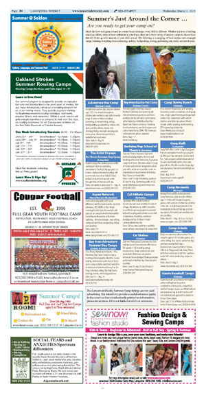 Each weeklong camp is filled with three amazing trips for ages 11-14. Week one: Sky High, Six Flags, AT&T Park. Week two: Safari West, China Town Scavenger Hunt, Exploratorium. Week three: Scandia Fun Center, Waterworld, A’s game. Week four: rock climbing, Fisherman’s Warf, Chabot. Register online at cityoforinda.org or at Orinda Community Center.