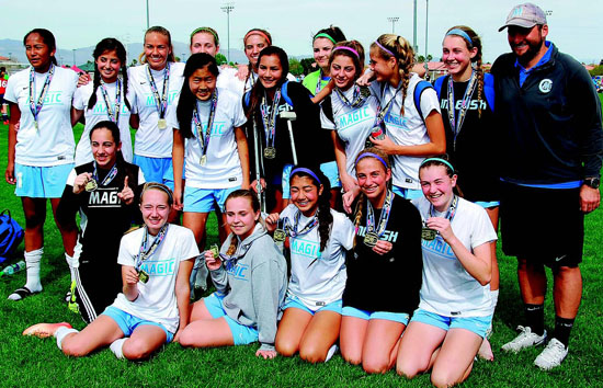 After a warmup tournament in early February, the girls entered the Las Vegas Players Showcase 2015 tournament on March 20-22. Despite facing the No. 1 team from Arizona and another from New Mexico, the Magic girls brought home the tournament championship, going undefeated in five games over three days while outscoring opponents 8-3.