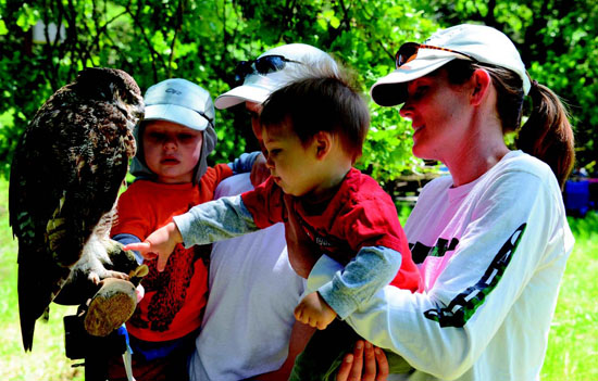Adults learned how to cook with solar ovens and mastered the art of composting while kids had their faces painted, ambled through nature-infused scavenger hikes, learned the ABCs of recycling, and looked into the eyes of raptors. Jenny Papka, owner of Native Bird Connections, was there with a few of her 15 non-releasable raptors, such as an American kestrel, which is an imperiled species, and a Eurasian eagle owl, one of the largest owls in the world.-