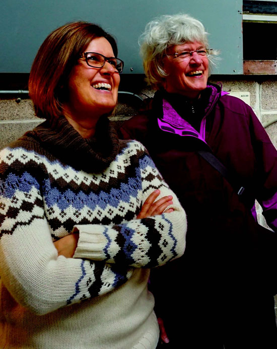 | Department manager Lochland Trotter, left, and UC Berkeley Astronomy Department chair Imke de Pater are all smiles watching the Leuschner telescope. |