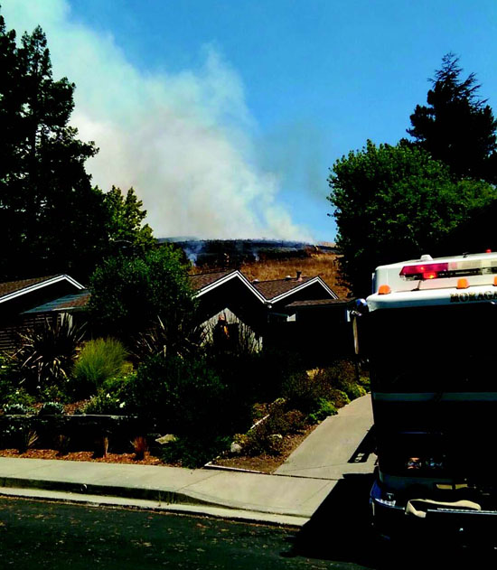 MOFD fire chief Stephen Healy praised the efforts of the rancher who had recently mowed the area near the site of the fire. The fire threatened structures in the nearby neighborhood but crept no closer than 100 feet to the nearest yard.