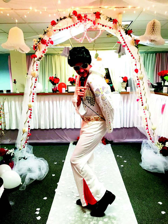 Elvis impersonator Dana Anderson poses Oct. 31 in the Vegas-style wedding chapel at the city of Lafayette office.