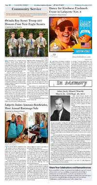 Page A 8 and A9 Opposing Forces Unite Against MOFD Station 43 Letters to the Editor City Considers Electric Charging Stations Elvis Sighting in Lafayette