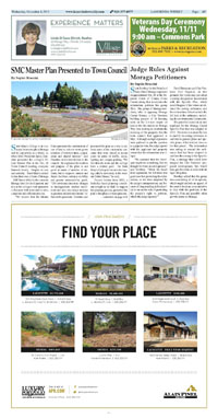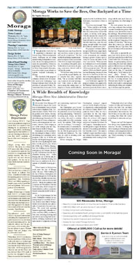 Page A 4 - A 5 Moraga Police Blotter Moraga Works to Save the Bees, One Backyard at a Time A Wide Breadth of Knowledge SMC Master Plan Presented to Town Council Judge Rules Against Moraga Petitioners