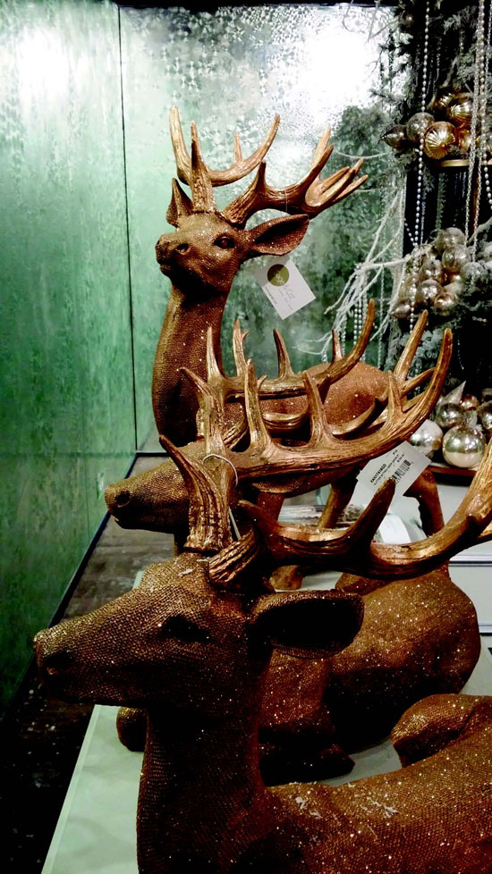 Gilded and jeweled deer are a big hit this season. Placed on the floor next to a signature tree, or in entry halls and dining rooms, not much else is needed. Photos courtesy Couture Chateau llc