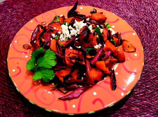Sweet potatoes ("yams") with Mexican spice, peppers, toasted pumpkins seeds and baked skins Photos Susie Iventosch