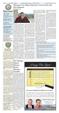 Page A 4 - A 5 Moraga Police Blotter Moraga's New Mayor Discusses Town Goals and Development New Moraga School District Board Member Needed Rainy Season Preview Increased Safety For All