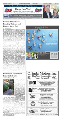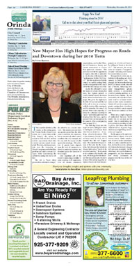 Page A 6 - A 7 Orinda Police Blotter New Mayor Has High Hopes for Progress on Roads and Downtown during her 2016 Term Council Mulls Road Funding Options and Directs Voter Poll