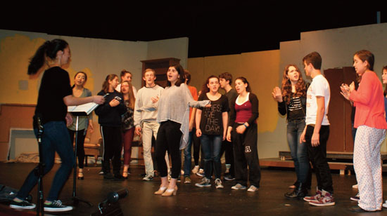 "The annual spring musical is a total Performing Arts collaboration," says Bruce Lengacher, director of choral activities and Acalanes Performing Arts Department chair. "The Drama department contributes set design, set construction, some advanced drama students, and the technical crew. Instrumental Music provides the musicians for the pit orchestra for every performance, and some of the top players in the program are in the pit. Choral Music provides the bulk of the cast and production company, which is made up entirely of students."