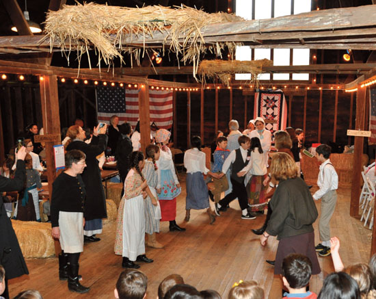 | | | Students perform period-era dances at Colonial Day. Photos Andy Scheck | | | | | | Kids decked out in aprons and bonnets were dancing with joy to the music of a fiddler in a historic barn directly adjacent to Happy Valley Elementary School for Colonial Days. Who knew 90 fifth graders could have this much fun on a rainy day without electronics?