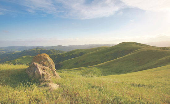 | | | Carr Ranch's stunning south view. Photo Adam Weidenbach | | | | | | With its 600 acres of open hills, canyons, creeks, trees, shrubs, wildflowers, wildlife and its spectacular views of the East Bay, Carr Ranch is one of the most beautiful open space properties around. While hiking or horseback riding the ranch, it truly seems as if the sky's the limit.