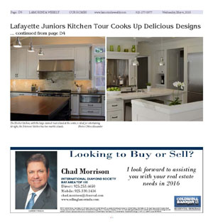These two kitchens will be featured on this year's tour along with four other homes located in Happy Valley, Reliez Valley, Hidden Oaks and the Trail neighborhood of Lafayette.