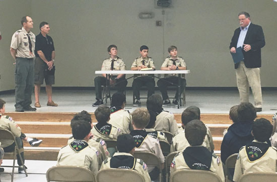 | | Boy Scout Troop 234 received a special honor from Mayor Mike Metcalf. Photo Bruce McGurk | | | | | | The Town of Moraga awarded Moraga Boy Scout Troop 234 a Certificate of Merit on April 26, recognizing the troop's work in drought education for the town.