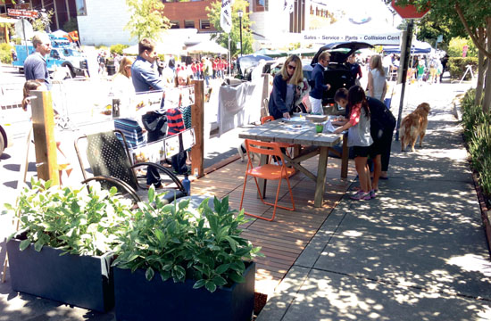 While adjacent business owners are looking forward to the casual garden spots, they are not meant to be used exclusively by those business. Instead, pedestrians, dog walkers, folks strolling by with a coffee or ice cream, along with take-out food patrons, are welcome to sit, relax and enjoy the parklet.