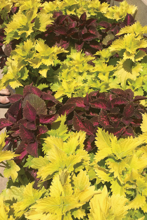 INCLUDE colorful coleus in both indoor and outdoor fall displays. The leaves are the flowers and the designs and patterns are endless.