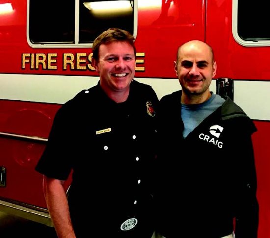 | | Published May 17th, 2017 | Inspiring outcome to an MOFD emergency call | | | By Nick Marnell |  | | Robertson and firefighter Airola reunite in April. Photo provided | Reed Robertson left his friend's house in north Orinda the evening of Sept. 18, and as he biked home along La Espiral his bicycle hit a crack in the pavement, he rolled over the handlebars and he slammed into the street, banging his helmet, forehead and shoulder into the pavement. "I could feel something happening to my neck, and I knew it wasn't good," Robertson said.