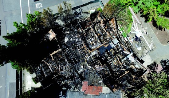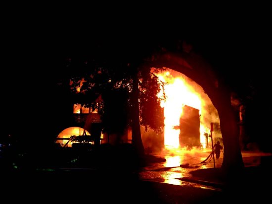 |  | | The morning after. Photo Nick Marnell |  | | The Lafayette Chamber offices and other businesses in flames. ConFire | | | | | | | | | |