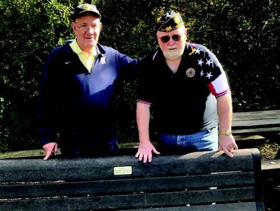 Dominic Sidari and Tony DeVenuta, both members of Post 517 had been planning to see the bench installed during their time with the Post to honor the town they loved and the game of their passion. Unfortunately, both Sidari and DeVenuta passed away before the bench could be purchased and the bench installed. Recently Drew Holland and Mike Gilson of Post 517 (pictured) visited the bench to remember and honor their friends who served their country and wanted this bench to honor all veterans and the friends they made playing bocce. The bench includes a plaque to honor Sidari and DeVenuta and the many friends they made in Moraga.